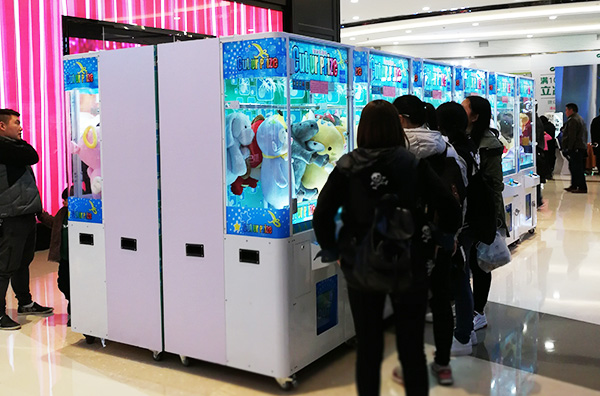 8、关于场地配电,机器都是可以一排串联起来的,因此只需要请求商场帮你安装一个电表,一个漏电开关,一个电源,机器的额定电压是220伏特,平均功率是100瓦/时,因此只要选择普通的电容量安装就可以了。等到机台进场,如果想要更方便管理,可以购买一个定时器安装在电源处,然后把机器全部串联在一起,这样机器就可以定时开机定时关机完全不用你为了开店而奔波劳累早出晚归了。不过不建议定时开关,剪刀礼品机最好有人管理运营,一方面可以及时补货,一方面可以防止别人盗取娃娃。